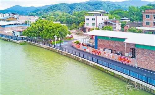 長(zhǎng)沙圩鎮(zhèn)碧道鋪設(shè)了瀝青并劃分跑道和自行車(chē)道,“顏值”再獲提升。(林翔?攝)位于梅江河圩鎮(zhèn)段碧道沿線的紅色休閑廣場(chǎng)效果....